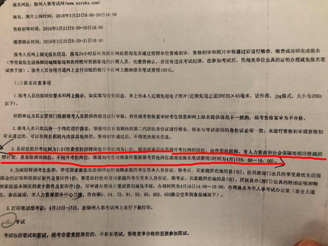 值得一提的是,紀元所報考的徐州市城鄉建設局房屋征收辦工作人員這一崗位,最低開考比例為3人。在2016招聘時,包括紀元在內,最終也只有3人通過審核。
