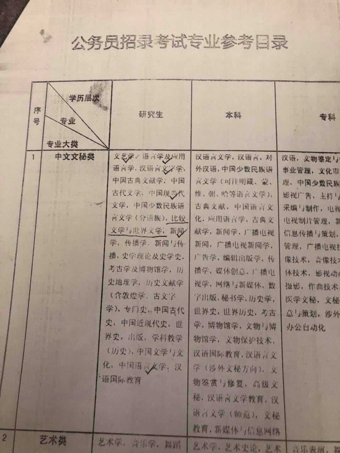 記者當場在“江蘇公務員考試網”、“江蘇公務員資訊網”等網站上查到了一份《2016年江蘇公務員考試專業分類目錄》,但文件中“中文文秘類”研究生專業一項,并沒有“中國語言文學”這一具體專業。