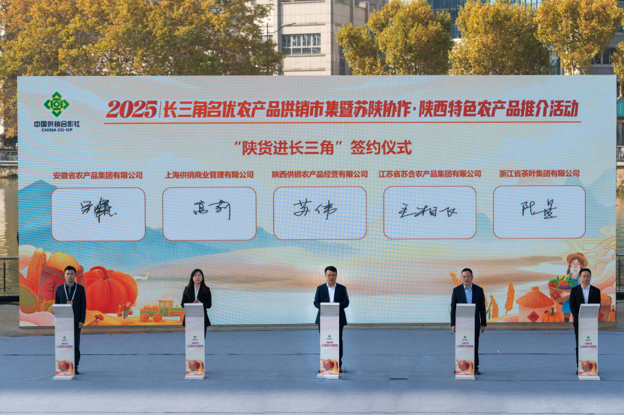 11月14日的開幕式上,“陜貨進長三角”對接簽約儀式順利完成簽約,江蘇、上海、浙江、安徽供銷合作社企業與陜西供銷合作社企業簽訂農產品對接協議,標志著東西部協作進入更深層次。陜西供銷集團此次攜梁家河小米、徐香獼猴桃、洛川蘋果等特色產品集體亮相,展現了從“出陜入蘇”向“融入長三角”的戰略升級。