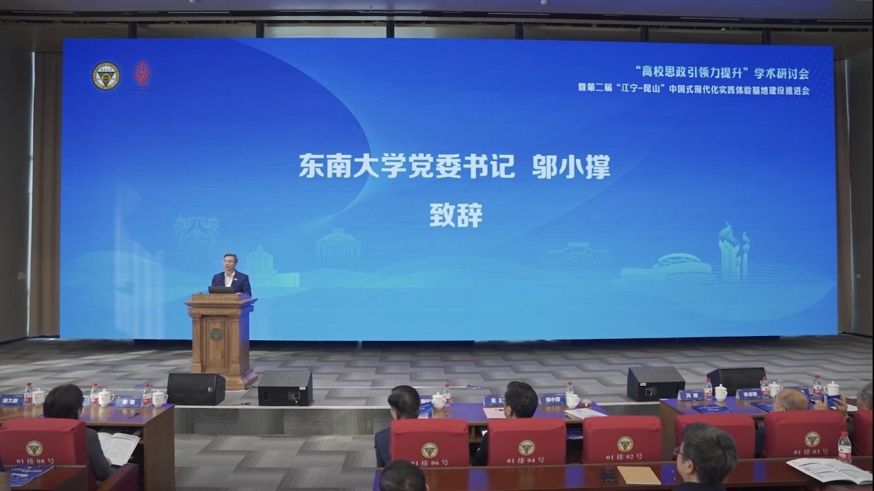 鄔小撐代表東南大學對與會嘉賓表示感謝和歡迎。他表示,東南大學素有紅色革命基因與思政育人傳統,新時代以來,學校認真落實立德樹人根本任務,著力構建一體化思政教育體系,聚力培養領軍人才。他特別提到,“江寧-昆山”中國式現代化教育實踐體驗基地作為校地深度融合的高層次綜合性育人平臺,將中國式現代化建設成就轉化為思政教育的鮮活樣本,有力提振信心、增強實效。他期待與會嘉賓共同探討高校思想政治教育引領力提升路徑,助力“江寧-昆山”中國式現代化教育實踐體驗基地建設和高校思想政治工作守正創新,為培養擔當民族復興大任的時代新人做出貢獻。