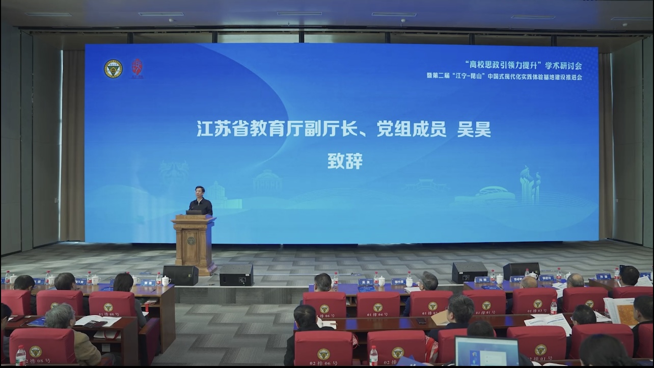 吳昊對會議召開表示祝賀,并系統闡述了江蘇作為經濟大省、教育大省在推進教育強省建設中的使命擔當。他表示,江蘇以百年樹人的戰略眼光辦好人民滿意的教育。近年來,全省高教系統在學科建設、科技創新、產教融合等方面成效顯著,軟科排名、“挑戰杯”競賽等關鍵指標位居全國前列。在思政工作方面,江蘇著力構建“大思政課”育人新格局,通過省領導聯系高校、推動教學創新、強化隊伍建設等舉措,凝聚育人合力。他指出,“江寧-昆山”基地是全國首個以“中國式現代化”命名的綜合性實踐平臺,在打造教學場景、分層育人、理論傳播等方面已形成示范效應,是江蘇“在落實國家重大戰略上走在前”的縮影。未來,省教育廳將持續支持基地在示范引領、校地協同、數智賦能等方面實現新突破,為全國思政教育提供“江蘇樣本”。