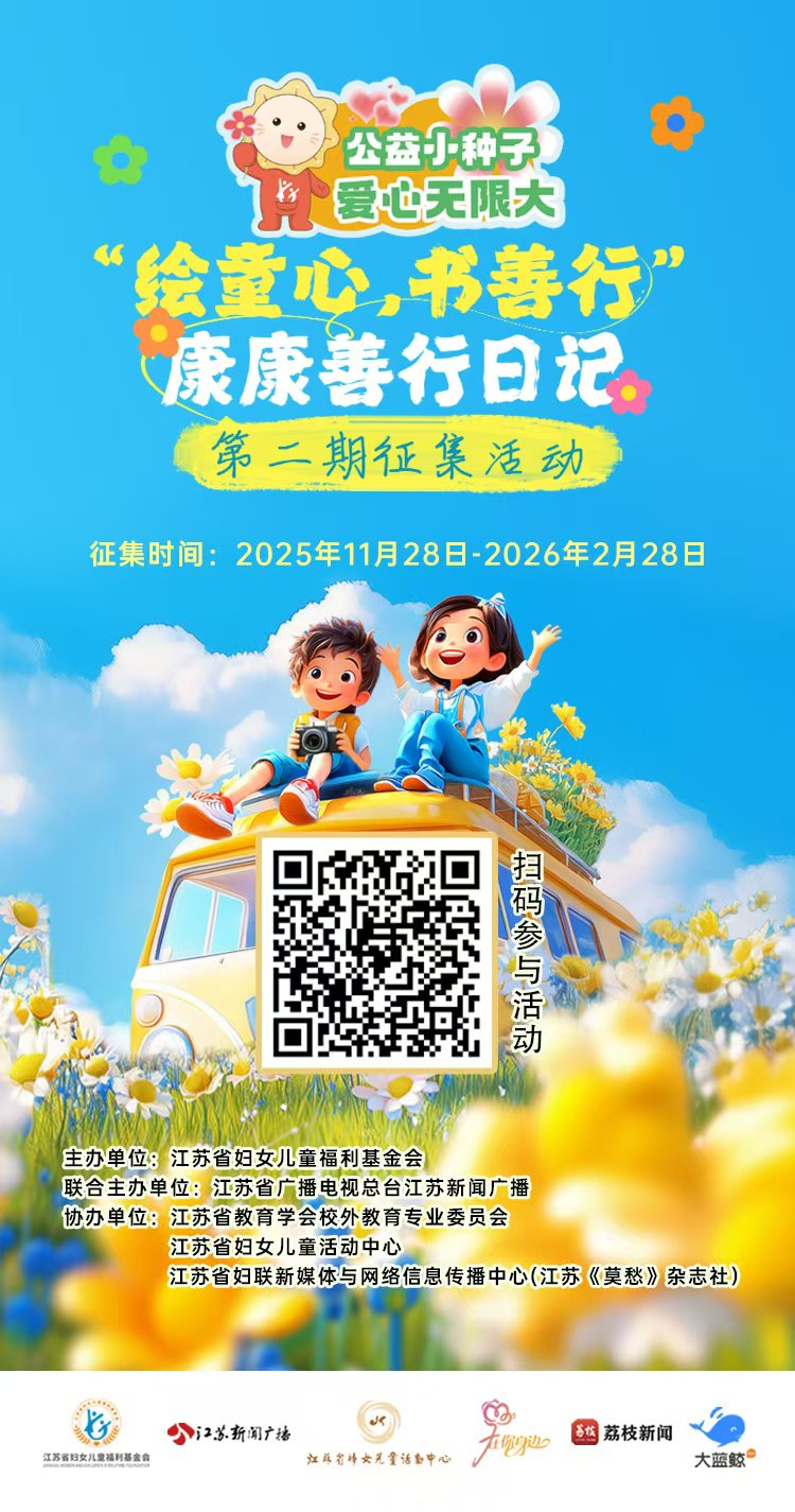 此次活動由江蘇省婦女兒童福利基金會、江蘇新聞廣播共同主辦,同時得到了江蘇省教育學會校外教育專業委員會、江蘇省婦女兒童活動中心、江蘇省婦聯新媒體與網絡信息傳播中心(江蘇《莫愁》雜志社)等單位的大力支持。各方攜手合作,共同為全省青少年兒童搭建起一座展示公益情懷、記錄善行善舉的絢麗舞臺。